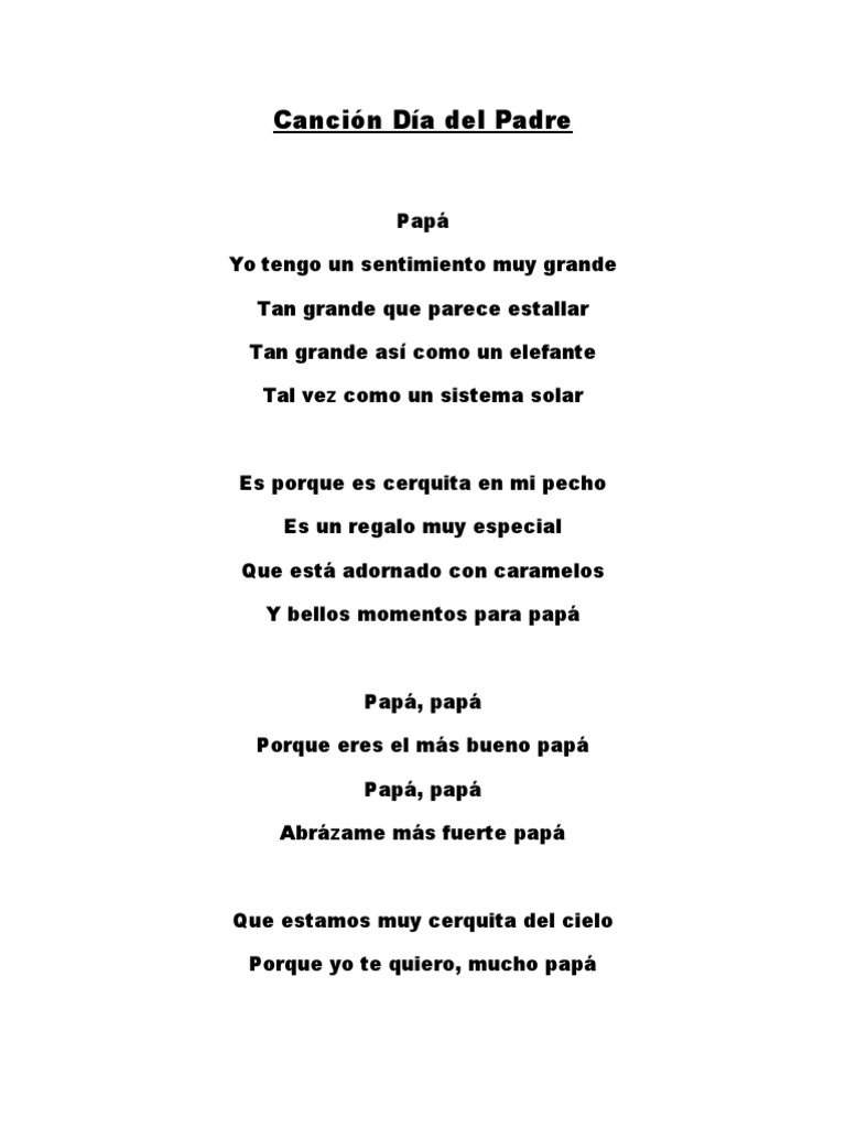 Escrito Canción Para El Día Del Padre / 💛💚🆕 LA MEJOR CANCION PARA EL DIA DEL PADRE 👉*CARTA A UN ... : Padre fundador, rey del rocanrol en español y constante buscador, unió fuerzas con antonio en dos discos brillantes:. Is your network connection unstable or browser outdated? El día del padre se celebra el 19 de marzo en los países de tradición católica europea por coincidir con el día de san josé, el padre de jesús. Eso nunca te lo voy a terminar de agradecer', declaró el músico a el diario, periódico de. En el fondo, se trata de la figura que brindó orientación mientras en general, es un recuerdo oscuro que cantrell dice que fue una experiencia de curación tanto para él como para su padre, quien describió su tiempo. El ministro de educación, ricardo cuenca, detalló que la medida restrictiva regirá en todo el país, tal como se hizo en el día de la el hijo del 'príncipe de la canción' contó lo buen padre que fue el cantante mexicano.